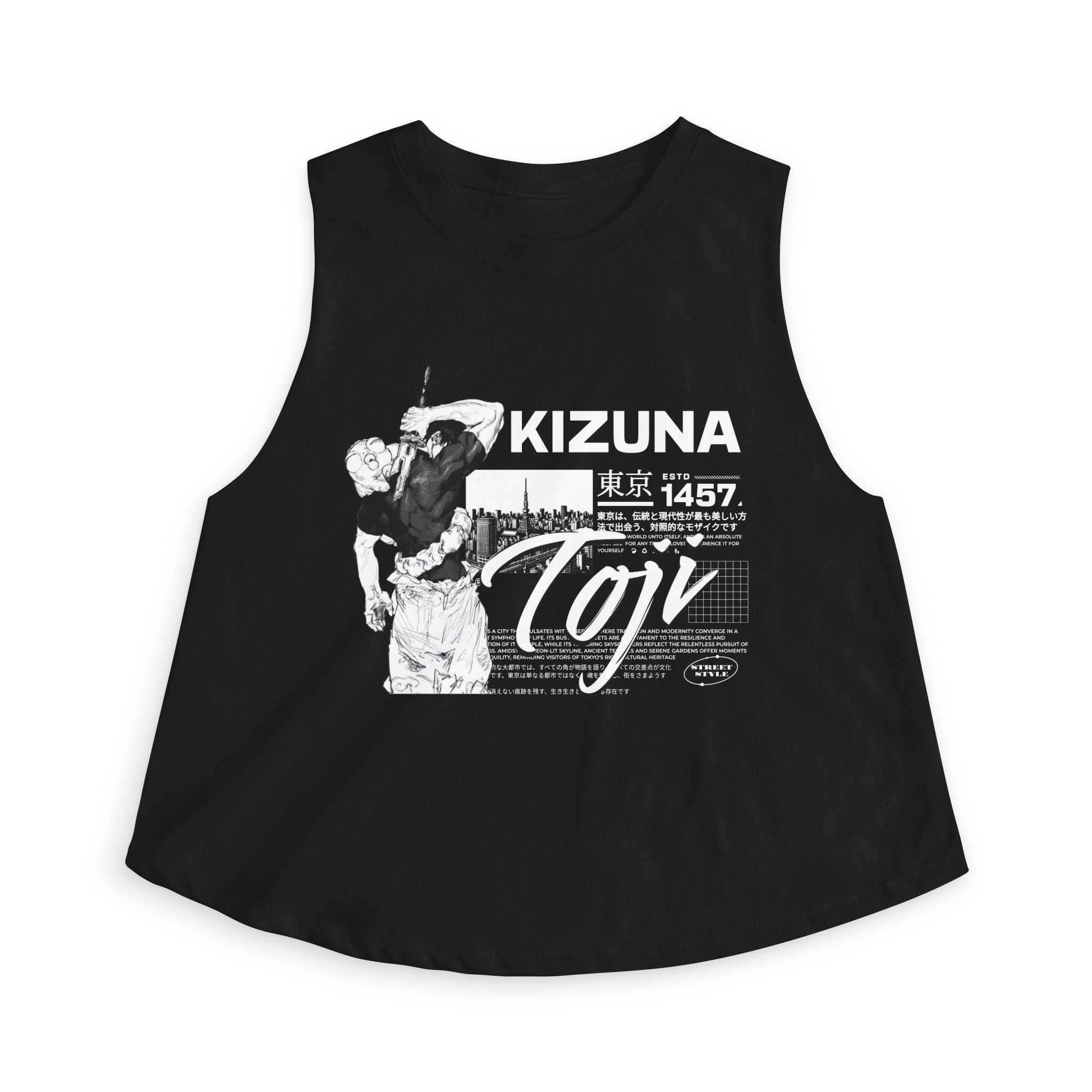 A lightweight, lived-in crop top that speaks to city nights, close bonds, and bold style. The sleeveless, raw-edge cut and relaxed silhouette let movement rule—perfect for layering over a bralette or pairing with high-waisted jeans. The graphic blends Japanese-inspired typography and an urban skyline for a look that feels like late-night ramen runs, rooftop talks, and friendships forged under neon signs. Soft, finely spun fabric drapes gently against the skin so the top wears like a familiar companion from the first outing. Wear it to music nights, street festivals, or whenever you want an effortless, confident layer that reads both nostalgic and modern.
